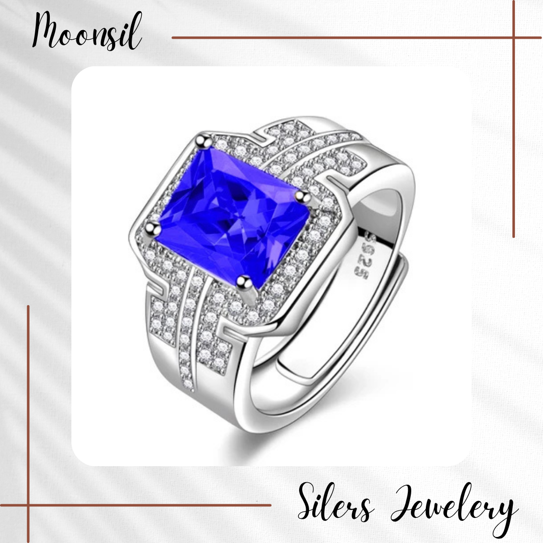 Nhẫn bạc Moonrysil đính đá sapphire xanh sở hữu thiết kế sang trọng, mạnh mẽ và đẳng cấp. Chế tác từ bạc cao cấp với độ sáng bóng hoàn hảo, kết hợp viên sapphire xanh sâu thẳm, nhẫn không chỉ là điểm nhấn thời trang mà còn thể hiện bản lĩnh, sự tự tin và phong thái lịch lãm của quý ông hiện đại. Từng chi tiết được gia công tinh xảo, mang đến trải nghiệm đeo thoải mái và cuốn hút.