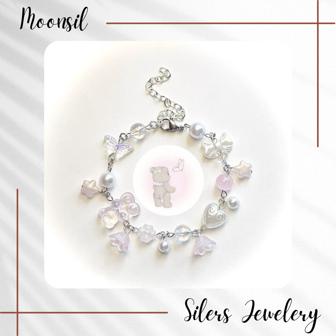 Vòng tay bạc cao cấp kết hợp nhiều charm ngọt ngào: gấu teddy, thiên thần, trái tim, hoa và đá hồng. Thiết kế mang đến vẻ ngoài đáng yêu, nữ tính và tràn đầy năng lượng tích cực.